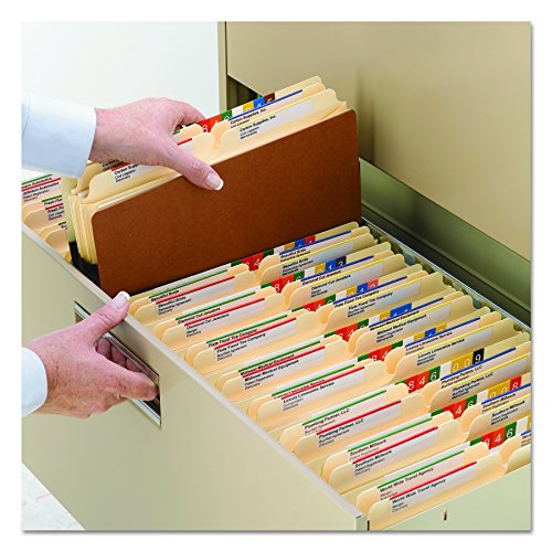 Smead File Pockets help keep large amounts of paperwork neatly organized and secure. Great for desk, drawer, shelf and on-the-go storage. Also ideal for use with storage boxes. Accordion style sides expand 5-1/4″ and hold up to 700 sheets. File pockets take up minimal space, expanding only when extra storage capacity is needed. Top of the gusset is reinforced with tear resistant material for extra strength and durability. Straight-cut tab provides a large visible labeling area. Includes 50 legal size (14-3/4″ W x 9-1/2″ H) file pockets with 5-1/4″ expansion. Contains 30% recycled content, 30% post-consumer material and is SFI Sourcing Certified.