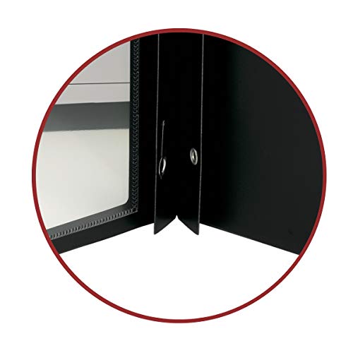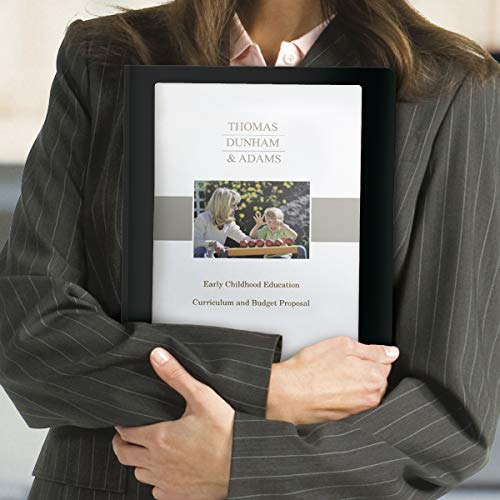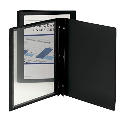 Neatly bind and cover presentations, reports, transcripts, proposals or other documents that require loose-leaf style binding. Durable poly material is tear proof and water resistant. Acid free, PVC free. Clear poly front with border frames the first page of your presentation in style. Three double tang fasteners with metal eyelet binding holes for added durability. 1/2″ capacity. Holds up to 80 3 hole punched sheets. Includes 5 letter size (9-3/8″ W x 11-1/2″ H) frame view report covers with double tang fasteners.