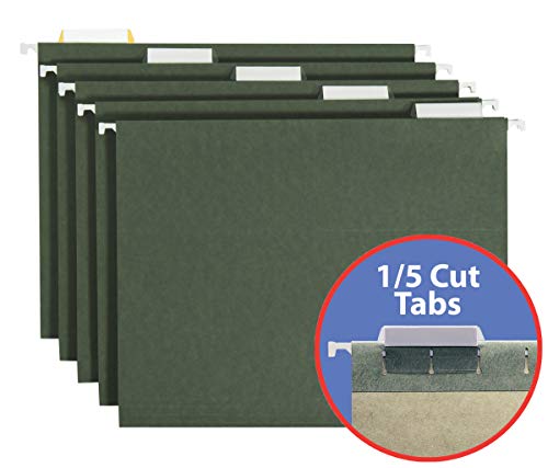 If it’s worth hanging on to, it deserves a Smead hanging file. Hanging file folders are the most popular way to keep papers organized in desk drawers, file cabinets and file boxes. With an efficient design and professional look, Smead’s Hanging File Folders are a great choice for any business setting. Each letter size hanging file folder in this 50-pack features a 1/5-cut repositionable poly tab and coated rod tips that slide easily in file drawers for hassle-free organizing and improved access to documents. The clear poly tabs have replaceable white inserts and can be positioned in several locations on the front or back panel, making it easy to find the file you are looking for and create a customized filing system. The lighter green color on the inside of the folder helps prevent accidental filing of papers between folders. Proudly made in the USA, these 11 pt. stock hanging file folders contain 10% recycled content, 10% post-consumer material and are SFI Sourcing Certified. This set includes 50 letter size hanging file folders (11-3/4″ W x 9-1/4″ H exclusive of rods and tabs) in a standard green color. • A Rich Heritage of Innovation and Quality. A world-leading provider of solutions for efficient document management, Smead is a woman-owned company well-known for its high quality, environmentally responsible products and innovative organizational systems. For more than a century, Smead has been committed to one purpose: Keeping You Organized!