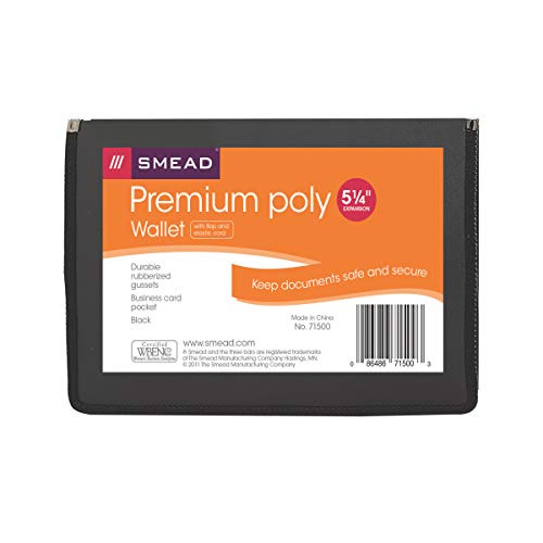 Smead Premium Poly Premium Wallet with Closure, 5-1/4″ Expansion, Letter Size, Black (71500)