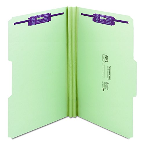 Smead’s Pressboard Fastener File Folders with SafeSHIELD Fasteners keep your documents orderly and easy to access while helping you avoid hand injuries, ripped papers and excessive fastener crinkling. These gray/green folders are designed for drawer use, ideal for project files, real estate transactions, loans, legal files, or large amounts of paperwork that need to stay in order for frequent reference. Includes 25 legal-size (14-3/4” W x 9-1/2” H overall, 9” H body) pressboard fastener folders with 1/3-cut tabs in assorted positions. Sturdy 25 point pressboard stock keeps papers intact while SafeSHIELD coated fasteners help prevent finger cuts, paper tears and desktop scratching. Gusset is coated with tear-resistant material to allow for folder expansion up to 2”. Proudly made in the USA. Contains 100% recycled content, 30% post-consumer material and is SFI Sourcing Certified. • A Rich Heritage of Innovation and Quality. A world-leading provider of solutions for efficient document management, Smead is a woman-owned company well-known for its high quality, environmentally responsible products and innovative organizational systems. For more than a century, Smead has been committed to one purpose: Keeping You Organized!