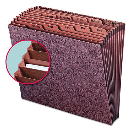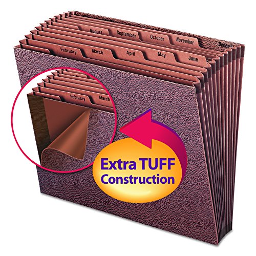 Expanding files are ideal for organizing, storing and transporting large amounts of paperwork. 12 pockets with monthly (Jan-Dec) indexing. Each pocket expands 7/8″. Heavy duty TUFF files are reinforced for extra strength and durability. Open top design for easy document access. Reinforced liner board front and back panels. Full-height redrope gussets are reinforced with tear resistant material at the top and bottom for durability. Includes one letter size (12″ W x 10″ H) 12 pocket TUFF expanding file. Contains 30% recycled content, 30% post-consumer material and is SFI Sourcing Certified.
