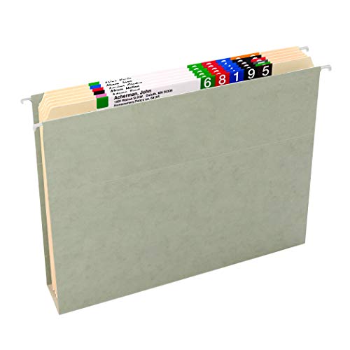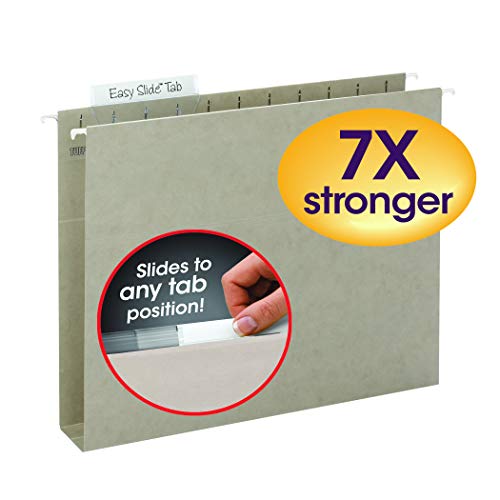 If it’s worth hanging on to, it deserves a Smead hanging file. Our strongest hanging file folders ever! Seven times stronger than the leading competitor. Specially designed reinforced rods are 40% stronger to resist bending and paper tearing. Made of heavyweight 14 point paper stock. Features our exclusive Easy Slide tab. These are heavy duty oversized tabs that easily slide and secure into any tab position. Neatly file manuals, catalogs and other bulky documents. Sturdy reinforcement strip keeps contents upright and prevents bulging. Expands 2′ for greater storage capacity. Includes 18 letter size box bottom hanging file folders (11-3/4″ W x 9-1/4″ H exclusive of rods and tabs) with 1/3-cut repositionable Easy Slide tabs and white tab inserts. Proudly made in the USA. Contains 10% recycled content, 10% post-consumer material and is SFI Sourcing Certified.