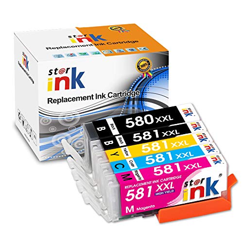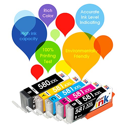 ☑ Package Includes: 5 Pack of Compatible Ink Cartridges for Canon PGI-580 CLI-581 PGI-580XXL CLI-581XXL(1 PG Black, 1 Black, 1 Cyan, 1 Magenta, 1 Yellow).
