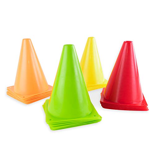 Super Z Outlet 7.5″ Bright Neon Colored Orange, Yellow, Red, Green Cones Sports Equipment for Fitness Training, Traffic Safety Practice (24 Pack)