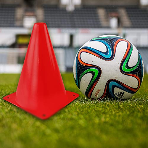 These sports cones are made of durable neon colored plastic, easy to see thanks to the bright color. These make excellent soccer cones for use as a running course or a soccer goal post, agility cones, activity cones, football equipment, basketball gear and overall great sports equipment and sports accessories for anyone.
