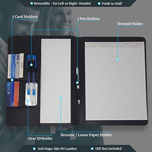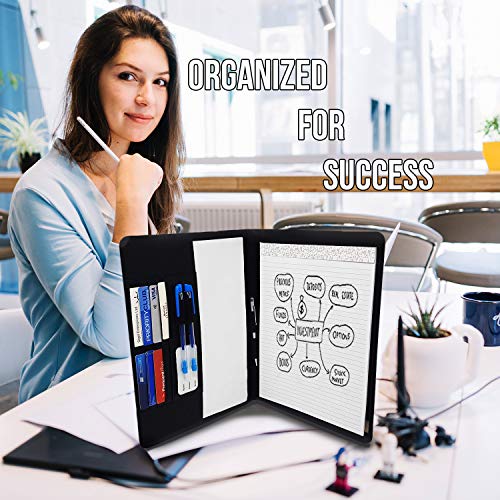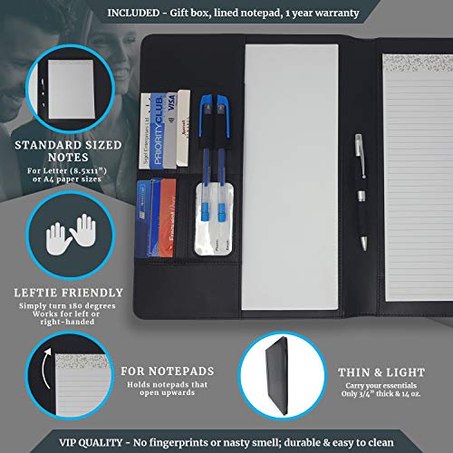 Thin Resume Portfolio Folder Organizer – Matt Black PU Leather Notepad Holder for Right or Left Handed Business Men/Women with 8.5 x 11″ Notepad by Lautus Designs