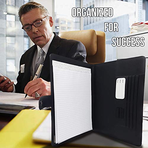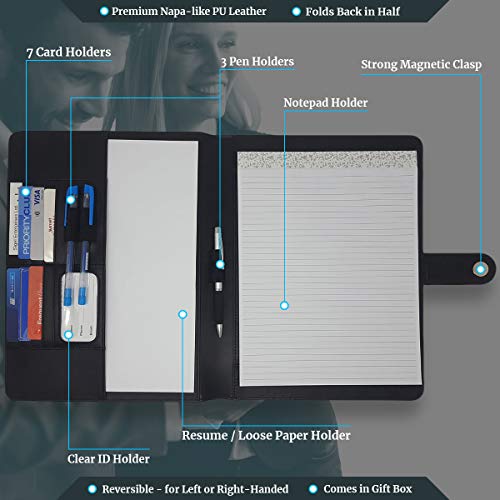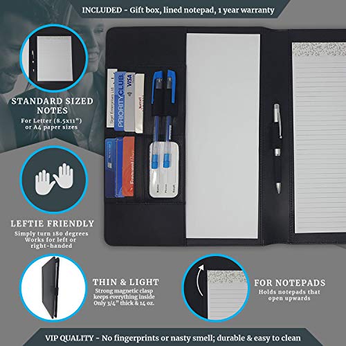 Thin Resume Portfolio Folder Organizer with Magnetic Strap Closure – Matt Black PU Leather Notepad Holder for Right or Left Handed Business Men/Women with 8.5 x 11″ Notepad by Lautus Designs