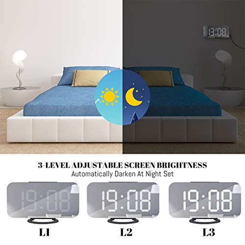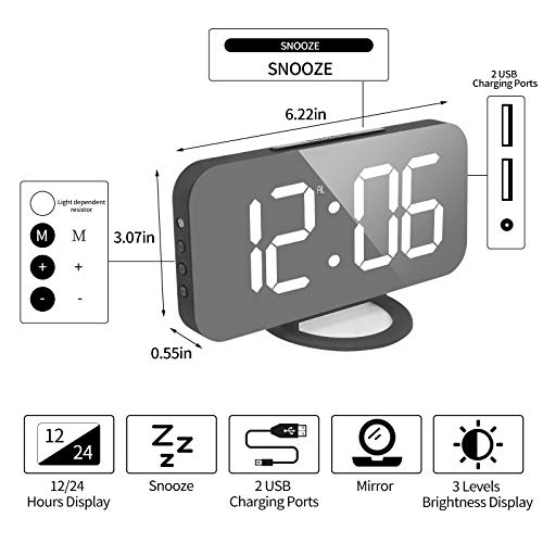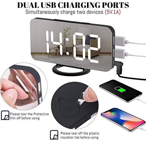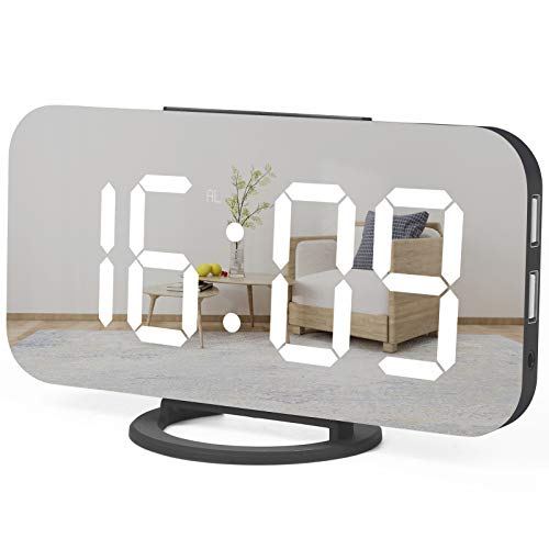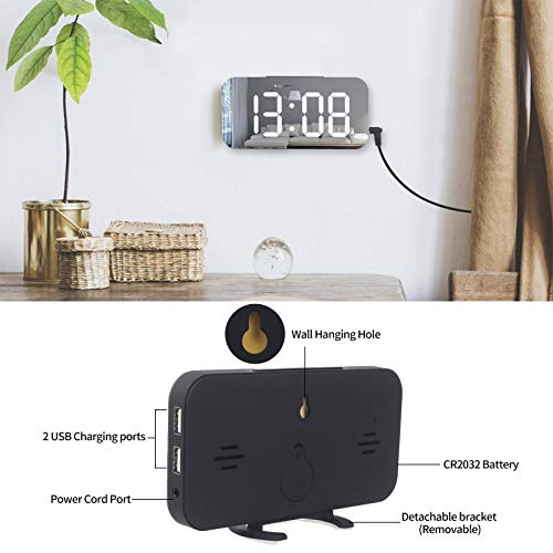 WulaWindy Digital Alarm Clock, Large Mirrored LED Display, with USB Charger, Snooze Function Dim Mode Wall Hanging Beside Desk Clock for Bedroom (Black)