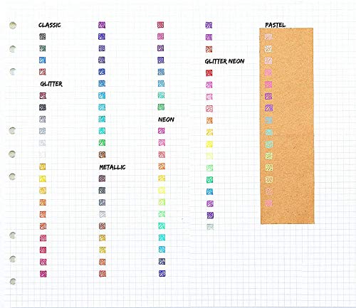 ★ VALUE PACK WITH NO DUPLICATE COLORS — 100 vibrant colors conatin 7 COLOR TYPES: 28 Glitter, 16 Glitter Neon, 17 Metallic, 15 Pastel, 6 Swirl, 14 Neon, 4 Classic. All the colors are bright and amazing, and the ink flows SMOOTHLY, brings much more fun for Adult book Coloring, Scrap booking, Sketching, Doodling, Drawing, Writing, and all the other art designs.