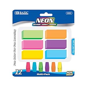 BAZIC Neon Eraser Sets, Pencil Top + Block Bevel Erasers (12...
