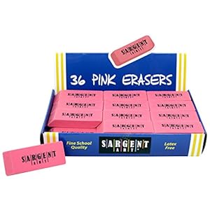 Sargent Art Large Erasers, 36 per Pack, Light Pink, Pink, Co...