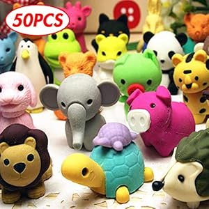 3 otters 50PCS Animal Pencil Erasers, Kids Pencil Erasers Pu...