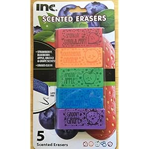 I-N-C Fruit Scented Latex-Free Erasers 5 Count,Red, Orange, ...