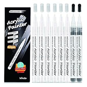 White Paint Pen,8Pack (6Pack White and 2Pack Black)0.7mm Acr...